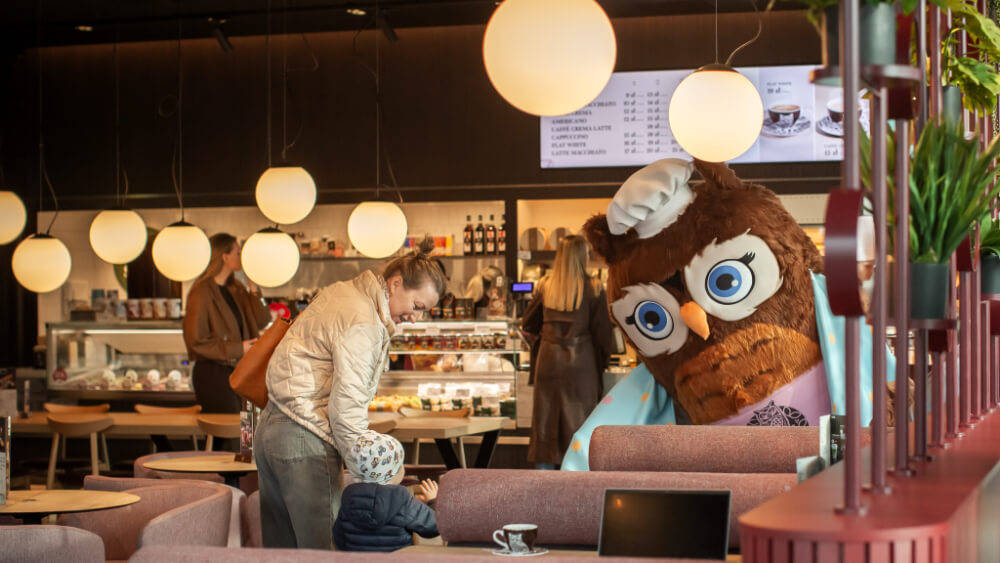 Nowością w tym lokalu jest kiosk do składania zamówień na miejscu, który pozwoli szybko i wygodnie wybrać ulubione produkty. Gorąco polecamy wytrawne przekąski z oferty Sowa Bistro, świeżo wypiekane produkty z Pyszne z Pieca, śniadania na ciepło oraz pyszną kawę z naszej palarni, którą można delektować się w przytulnych wnętrzach nowego lokalu.