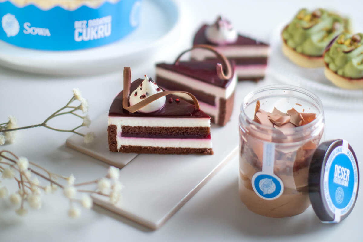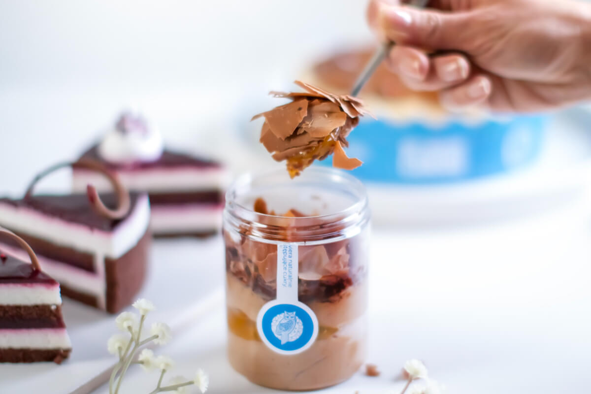 Mus czekoladowy bez dodatku cukru z nadzieniem owocowym. Zawiera substancje słodzącą. Zawiera naturalnie występujące cukry.